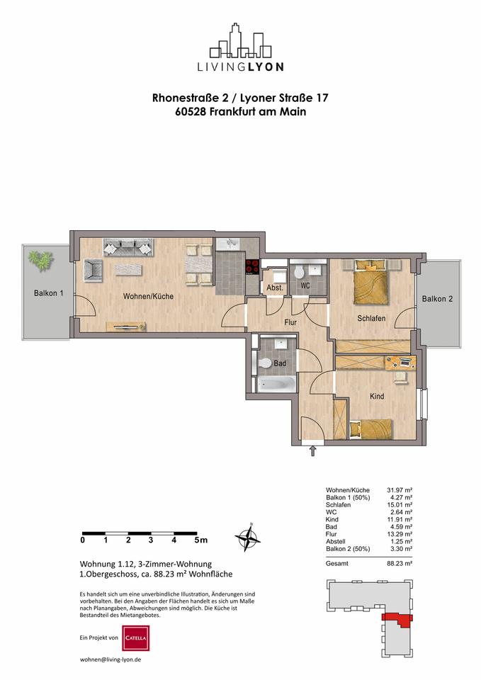 Sie befinden sich hier: Living Lyon: Moderne 3-Zimmer-Wohnung mit EBK in Frankfurt am Main Niederrad - 3335436266-203-4321 | 1A-Immobilienmarkt.de