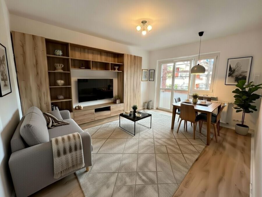 KI erstellte Möblierung Wohnzimmer - Provisionsfrei* Provisionsfreie Eigentumswohnung in Berlin Lankwitz (bezugsfrei)zoom
