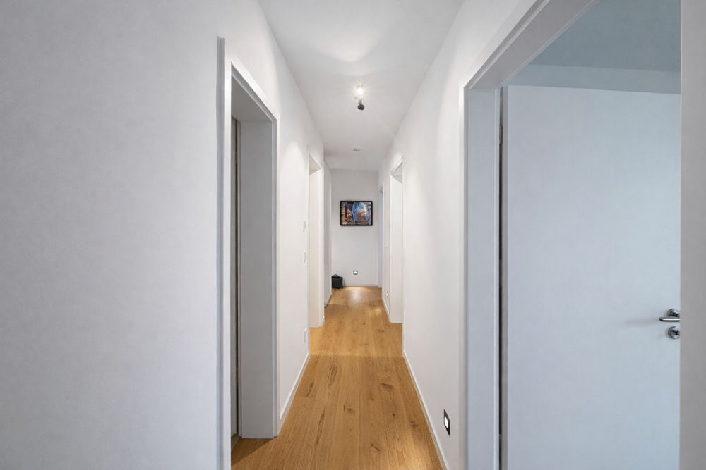 Das exklusive Mehrfamilienhaus mit nur 8 Wohneinheiten bietet ein helles Raumkonzept mit klaren Grundrissen. 100 m² Wfl. verteilen sich bei dem offenen Wohnkonzept auf einen großen Wohn-/Essbereich mit Küche, 2 Schlafzimmer, Gäste-Duschbad und Tageslicht Wannenbad. Der sonnige Balkon bietet zusätzlichen Lebensraum im Freien und ist großzügig gestaltet. Abgeschlossen wir die Raumaufteilung durch den eigenen Hauswirtschaftsraum, mit einem praktischen Waschmaschinenanschluss. Die Architektur ist modern, äußerst komfortabel und sorgt für eine repräsentative Ausstrahlung des gesamten Wohnhauses.