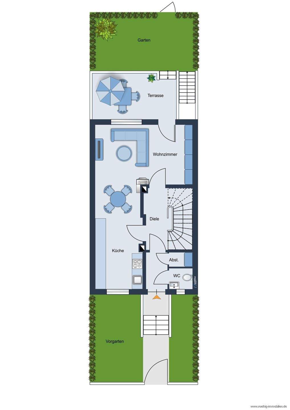 • visualisierter Vorgarten - Familientraum in Harlaching (Tiroler Platz): Helles RMH mit schönem Garten, Balkon & Einzelgarage.