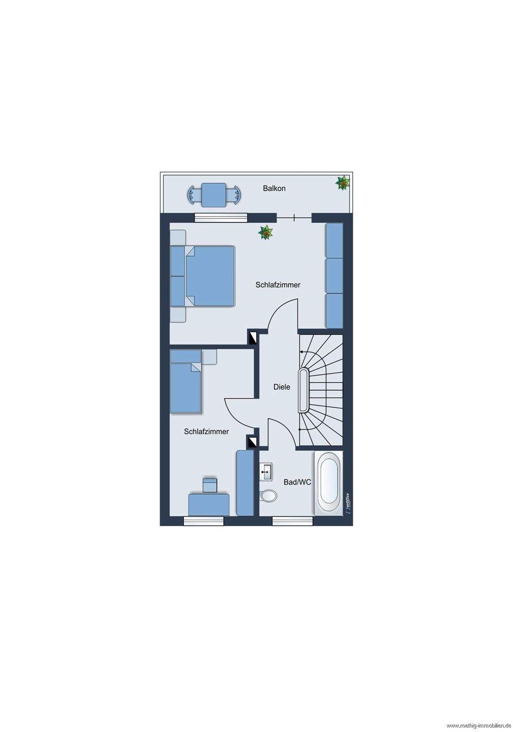 • Dachgeschoss - Grundrissskizze des Hauses - nicht maßstabsgetreu - Möblierung dient lediglich zur Veranschaulichung und ist nicht Bestandteil des Hauses -