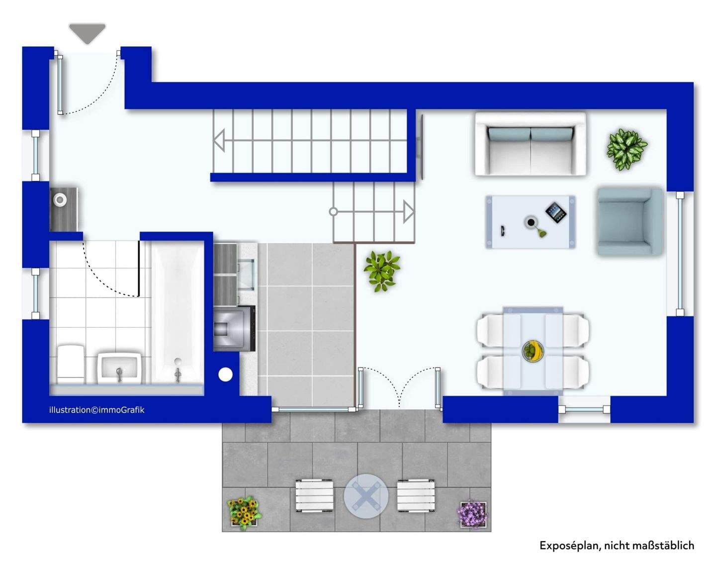 • Terrasse mit Garten -
