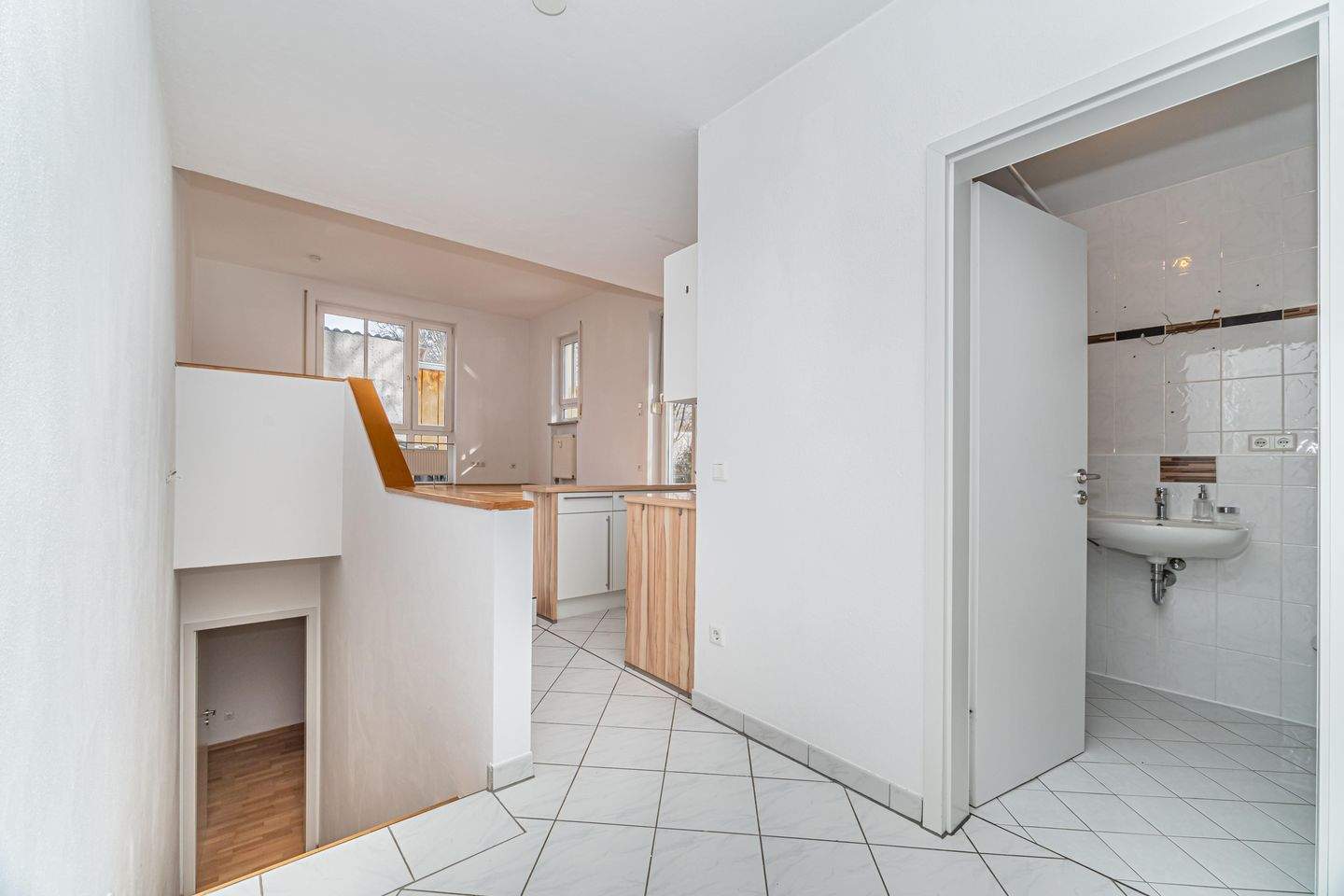 • Flur mit Blick ins Bad -