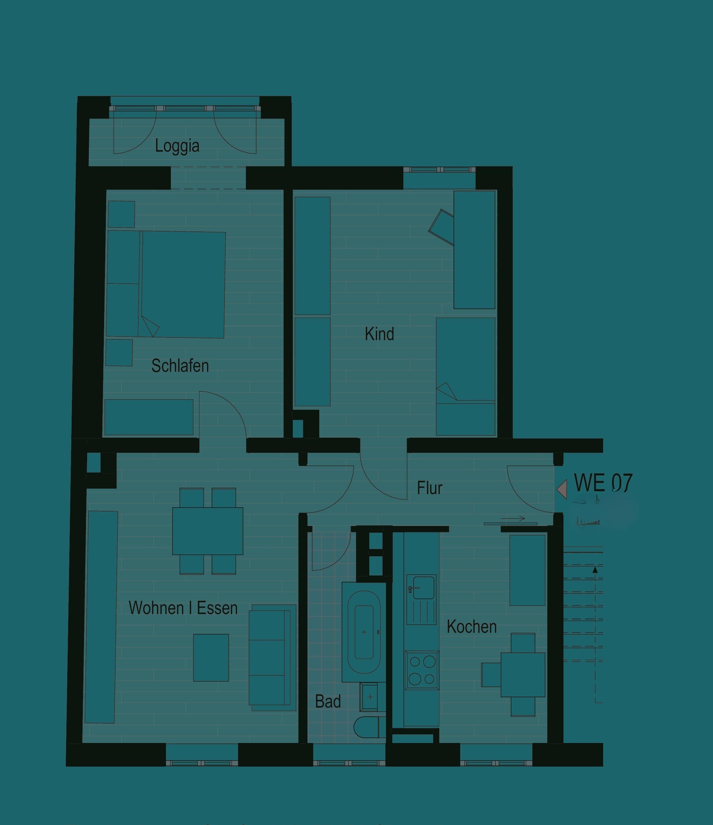 Ein besonderes Highlight ist die großzügige Loggia, von der aus Sie einen schönen Blick ins Grüne genießen können. Der große Gemeinschaftsgarten steht allen Bewohnern zur Verfügung und lädt zum Verweilen im Freien ein. Das Herzstück der Wohnung ist die Einbauküche, die im Mietpreis enthalten ist – perfekt, um gemeinsame Mahlzeiten zuzubereiten und gemütliche Abende zu verbringen.
