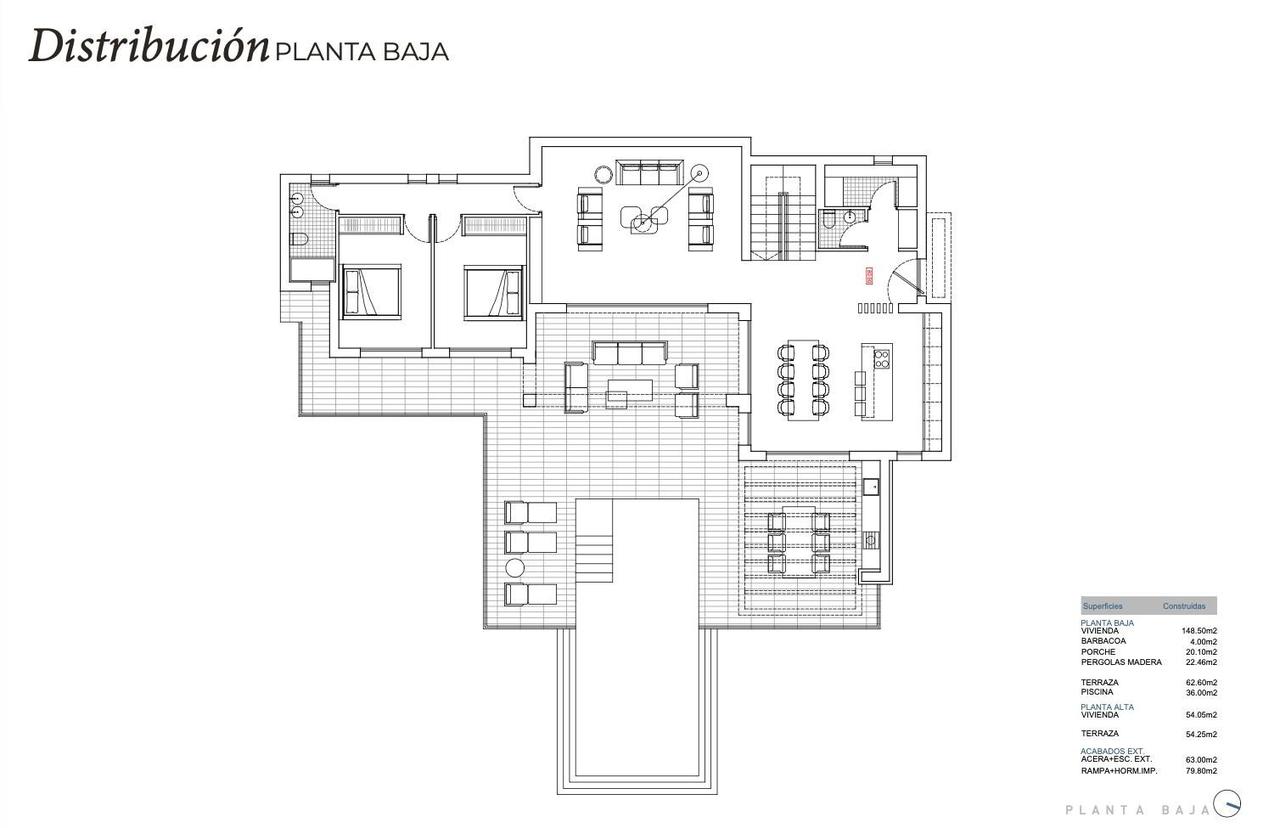 Ibizenkisches Design und hochwertige Ausstattung Inspiriert von den klaren Linien und natürlichen Materialien Ibizas, kombiniert die Architektur kubische Volumen, Holz und Stein, um warme und zeitlose Räume zu schaffen. Große Fenster maximieren das natürliche Licht und schaffen einen nahtlosen Übergang zwischen Innen- und Außenbereich.