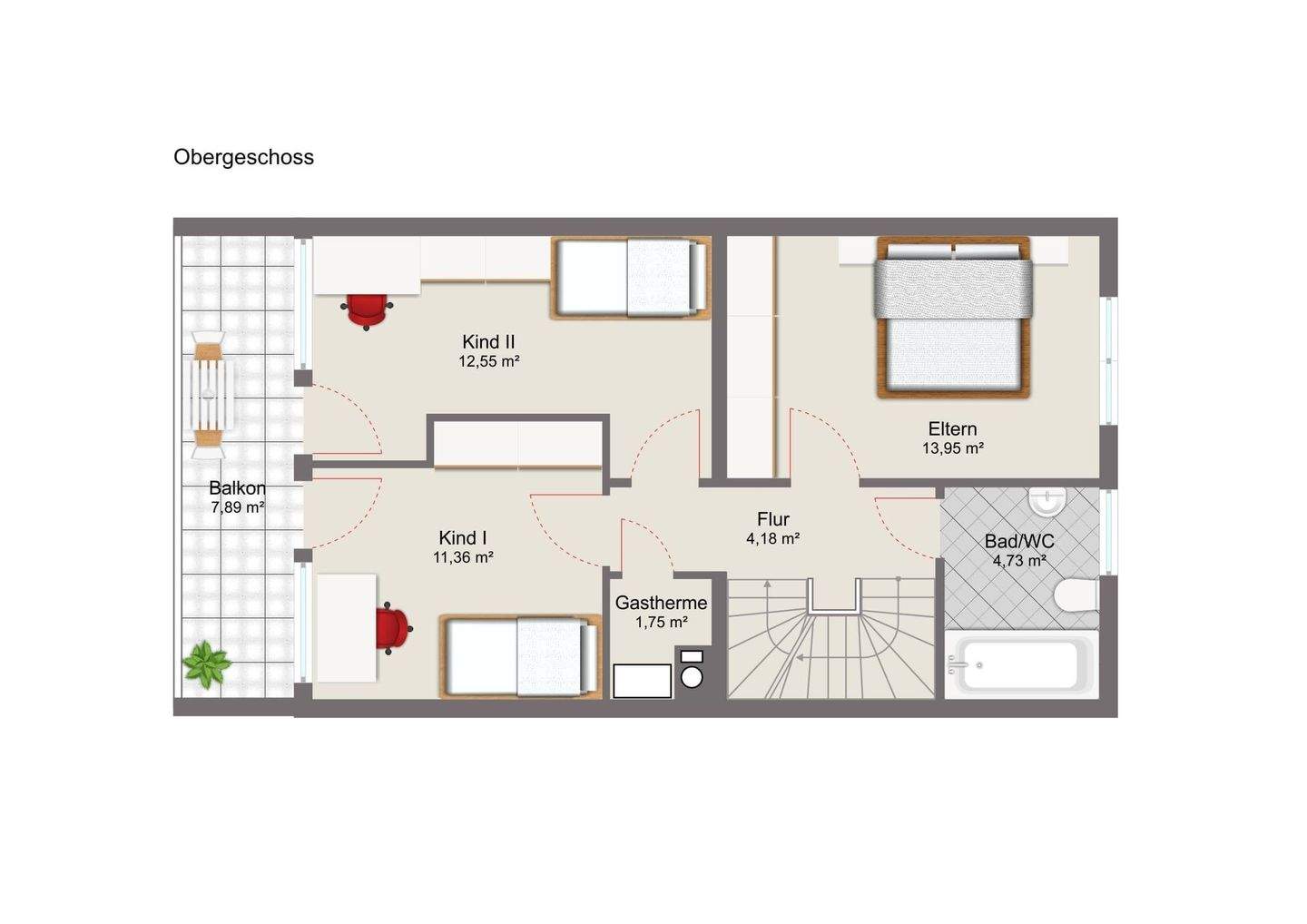 • Obergeschoss mit Mustermöblierung -