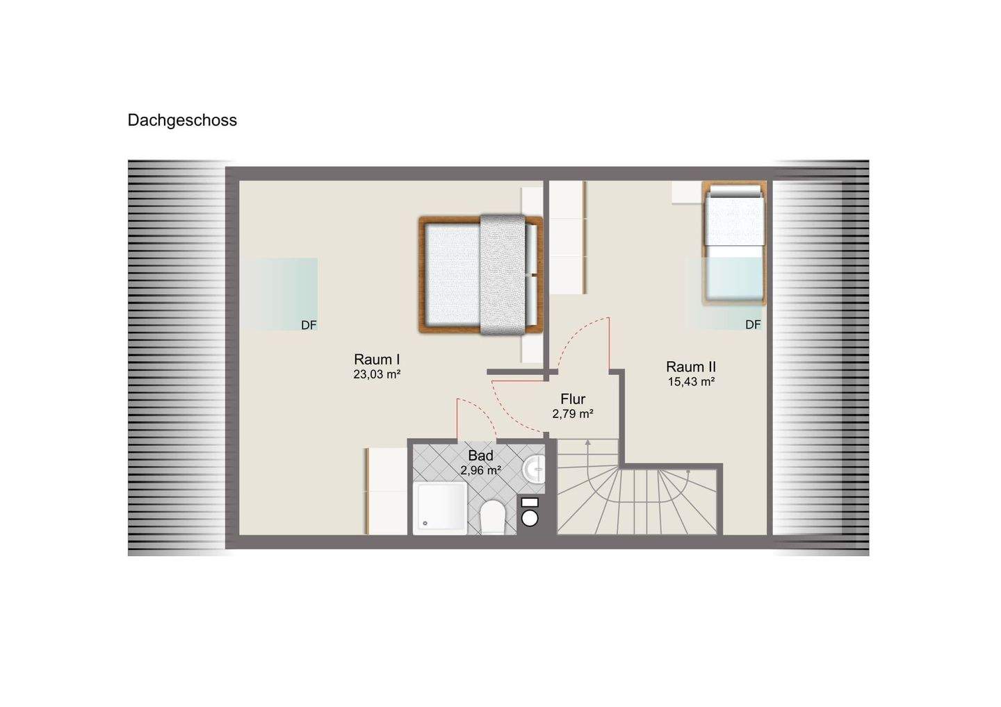 • Dachgeschoss mit Mustermöblierung -