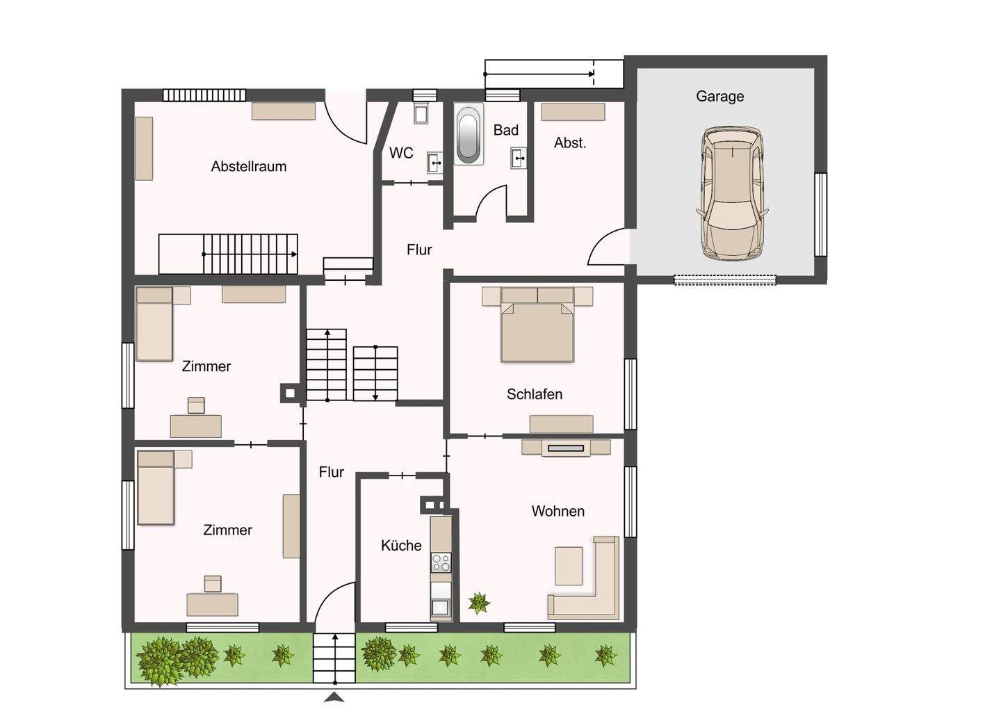 Einfamilienhaus mit Garten und Garage
