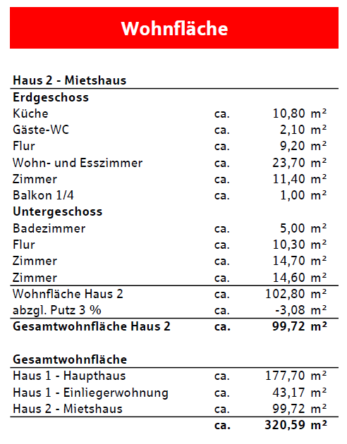 • Wohnflächenberechnung - Haus 2 -
