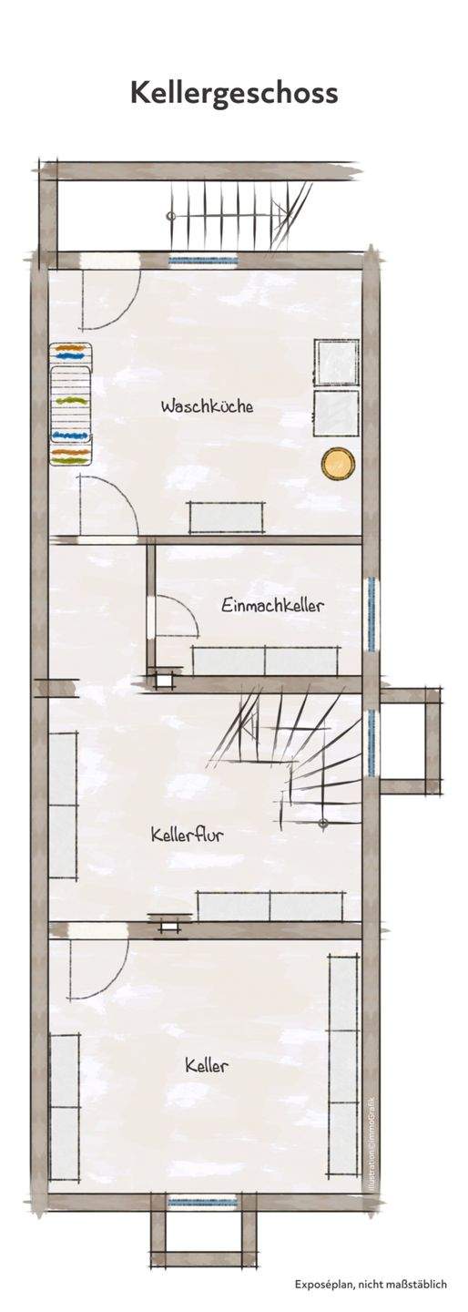 • Waschküche mit Kelleraußentreppe -