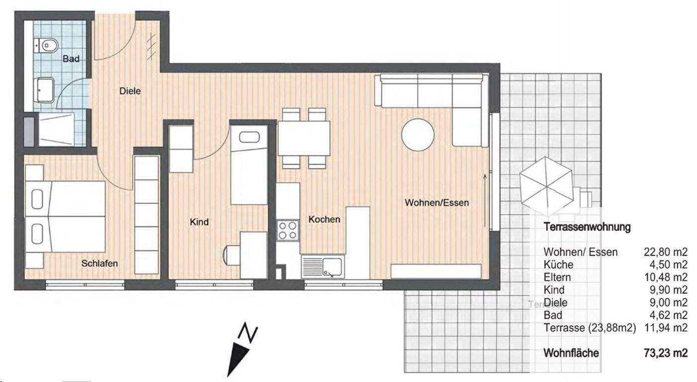 Zimmeranzahl :3 Gesamtgröße :ca. 73,00 m² Wohnfläche :ca. 73,20 m² Baujahr :2024 Energieausweis :