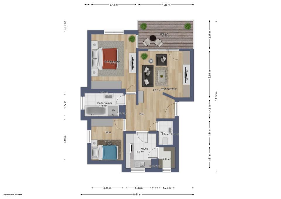 | Gesamtgröße: | ca. 69,16 m² |