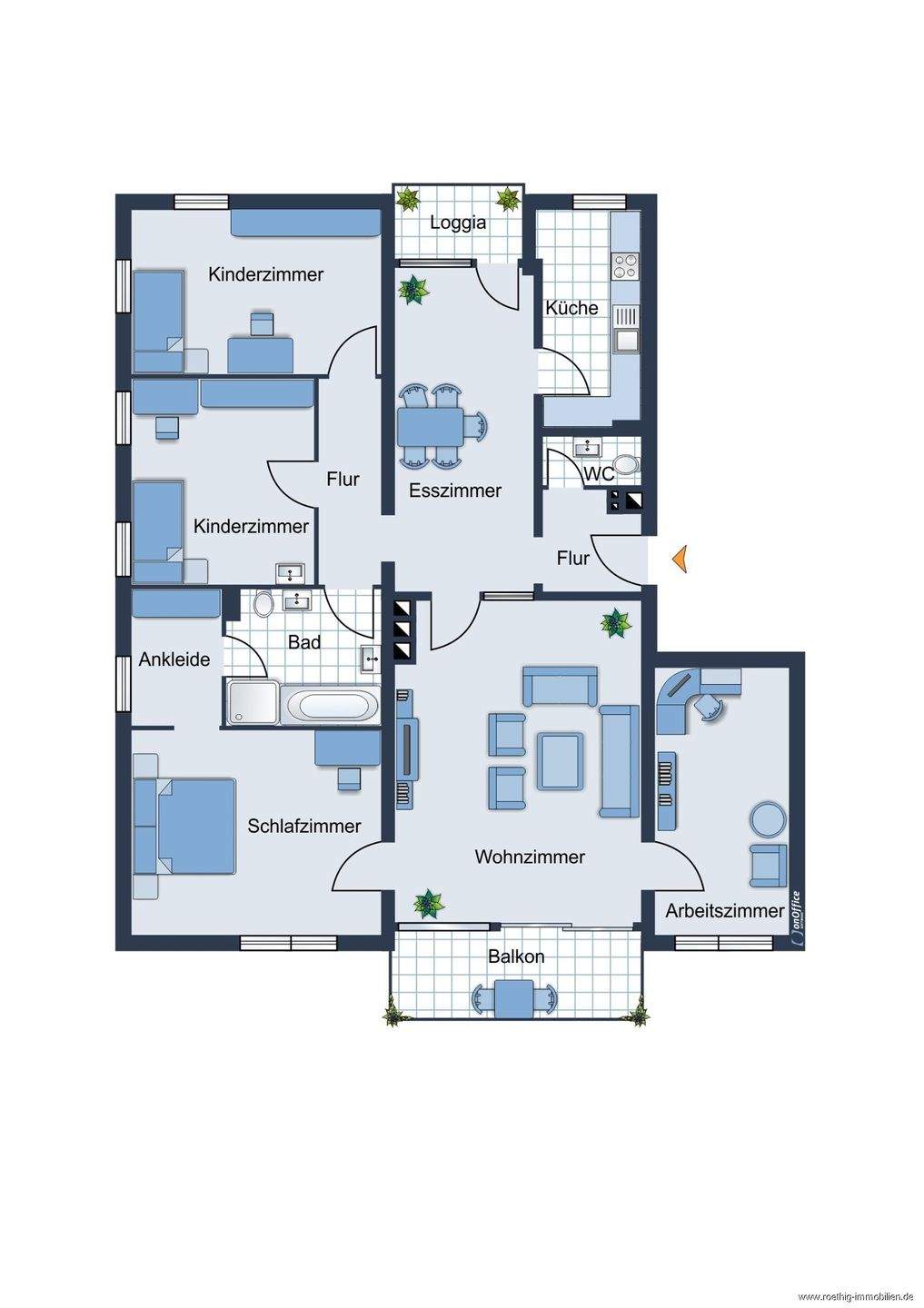 • Grundriss der Wohnung - nicht maßstabsgetreu - Möbilierung dient lediglich zur Veranschaulichung und ist nicht Bestandteil der Wohnung -