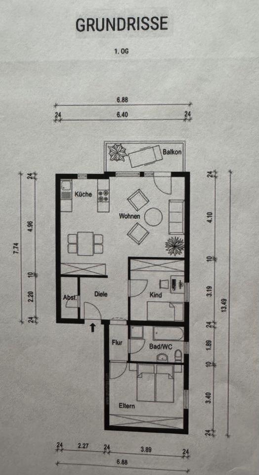 3,5-Zi.-Wohnung mit Balkon & Stellplatz Leingarten