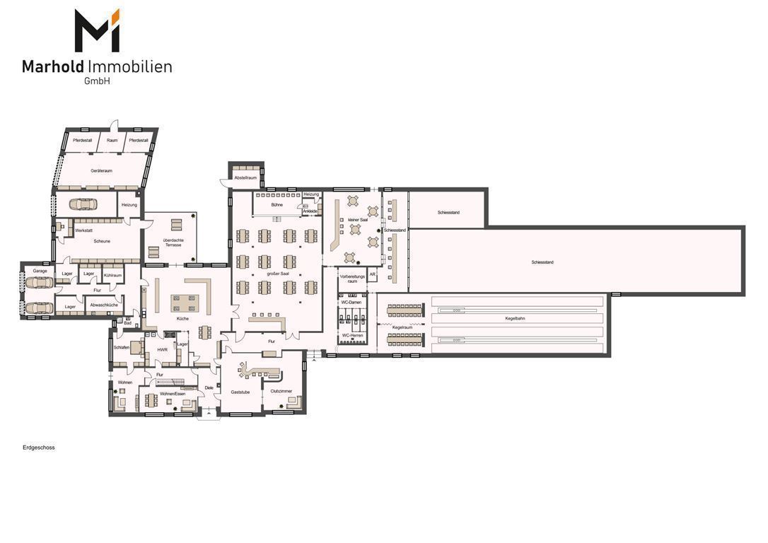 Wir suchen im Auftrag einen motivierten Unternehmensnachfolger für ein außergewöhnliches Anwesen mit rustikalem, aber sehr stilvollem Charme sowie modernem Entertainment. Dies ist der ideale Ort für Liebhaber von geselligen Zusammenkünften, Sport und Tierfreunden. Das imposante Gebäude beherbergt ein erstklassiges Restaurant mit angeschlossener Gaststätte, eine voll ausgestattete Kegelbahn mit vier Bahnen, einen Schießstand sowie eine geräumige Scheune mit zwei liebevoll gestalteten Pferdeboxen. Betritt man das Anwesen, wird man von einer warmen Atmosphäre empfangen, die von der rustikalen stilvollen und soliden Inneneinrichtung geprägt ist. Das Restaurant bietet Platz für zahlreiche Gäste und ist geschmackvoll mit Holzelementen, gemütlichen Sitzgelegenheiten und stimmungsvoller Beleuchtung gestaltet. Eine geräumige, knapp 85m² große Küche aus Edelstahl mit einem Profi-Gasherd ist ein Ort, der die Herzen von Kochprofis höherschlagen lässt. Diese gut geplante und geräumige Küche wurde entworfen, um höchste Funktionalität und Effizienz zu bieten. Das Restaurant und die angeschlossene Gaststube verfügen über eine beeindruckende Vielseitigkeit in Bezug auf ihre Veranstaltungsräume. Neben dem gemütlichen Ambiente des Hauptrestaurants und der Gasstätte gibt es auch zwei speziell gestaltete Säle. Ein großer Saal bietet Platz für bis zu 200 Gäste und ist perfekt für größere Veranstaltungen wie Hochzeiten, Firmenfeiern oder Konferenzen. Mit seiner großflächigen Ausstattung und anpassbaren Raumgestaltung kann dieser Saal an verschiedene Anlässe angepasst werden. Er schafft eine elegante Atmosphäre und bietet genügend Platz zum Tanzen und eine Bühne für besondere Präsentationen. Für intimere Veranstaltungen und kleinere Gruppen bietet der kleine Saal Platz für bis zu 70 Personen. Dieser Raum ist ideal für private Familienfeiern, Geschäftsbesprechungen oder kleinere Gesellschaften. Die Kegelbahn ist ein Highlight dieses Anwesens. Mit insgesamt vier Bahnen bietet sie Unterhaltung für Anfänger und erfahrene Kegelsportler gleichermaßen. Die Bahnen sind perfekt gepflegt und bieten die ideale Kulisse für gesellige Runden mit Freunden und Familie. Außerdem besteht die Möglichkeit die Bahnen durch eine Trennwand zu entweder 2x2 Bahnen oder offen für eine große Runde mit 4 Bahnen zu nutzen. Auch die Freunde des Schießsports kommen hier nicht zu kurz. Der hauseigene Schießstand ist für die Region ein Symbol für Gemeinschaft, Engagement und Tradition. Er bietet eine stabile und sichere Umgebung für Schützen aller Altersgruppen und schafft eine Plattform für Bildung, Wettkampf und Kameradschaft sowie für die Belebung von Restaurant und Gaststätte. Außerdem bietet das Restaurant seinen Gästen einen bequemen Zugang mit insgesamt ca. 65 Parkplätzen für PKW. Diese großzügige Anzahl an Parkplätzen stellt sicher, dass die Gäste stressfrei und ohne Parkplatzsorgen ankommen können. Für Freunde des Wandersports oder Naturbegeisterte Spaziergänger führt ein Wanderweg hinter dem Restaurant direkt in den Düster Wald. Der Energieausweis ist derzeit in Bearbeitung.
