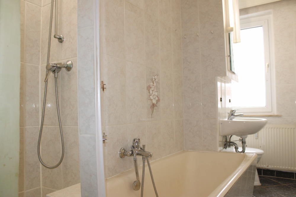 Das Tageslichtbad mit Badewanne und Dusche bietet sowohl für die schnelle Dusche am Morgen als auch für ein entspannendes Bad am Abend optimalen Komfort.
