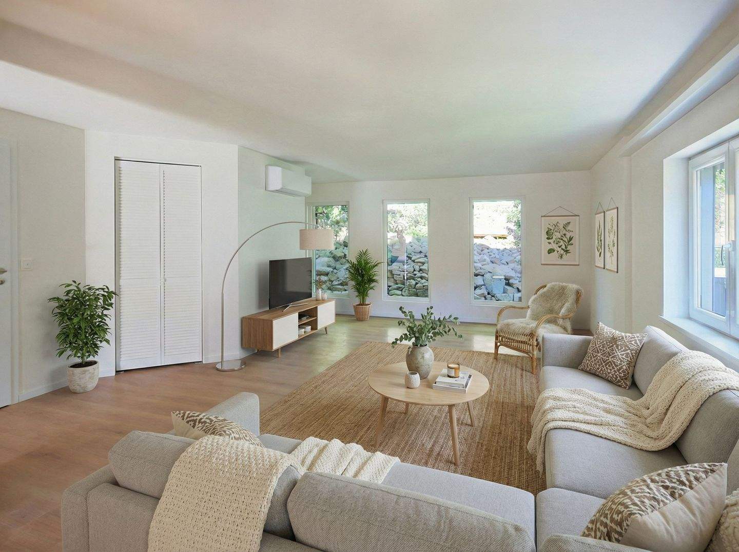 • Wohnbereich mit bodentiefen Fenstern (Visualisierung) -