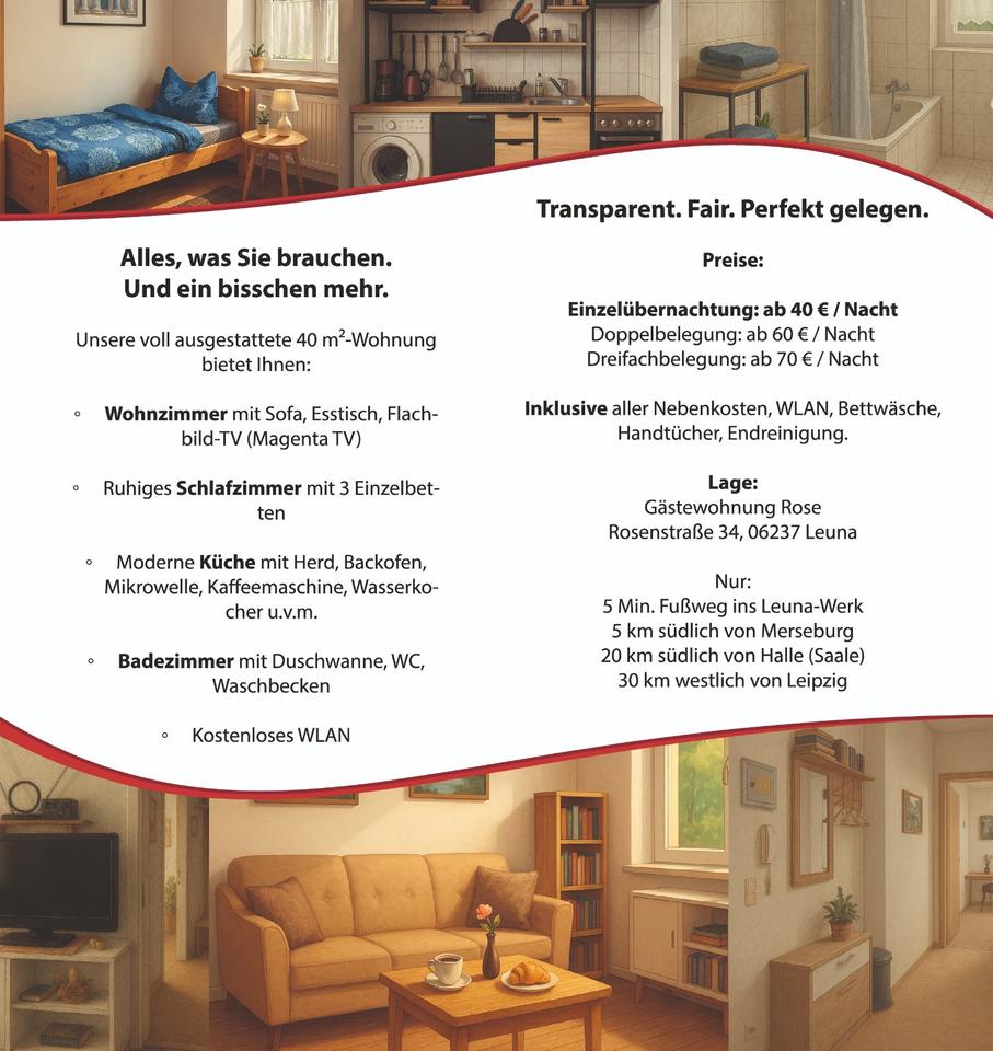 Sie befinden sich hier: Monteur-Kurzzeitwohnung Leuna nahe MerseburgHalleLeipzig in Leuna - 3336621723-275-19725 | 1A-Immobilienmarkt.de