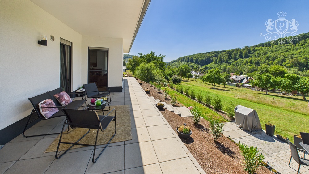 Die Wohnfläche setzt sich aus den Innenräumen sowie anteilig berücksichtigten Terrassenflächen zusammen und vermittelt ein besonders offenes und komfortables Wohngefühl. Große Fensterflächen sorgen für helle Räume und eine angenehme Wohnatmosphäre.