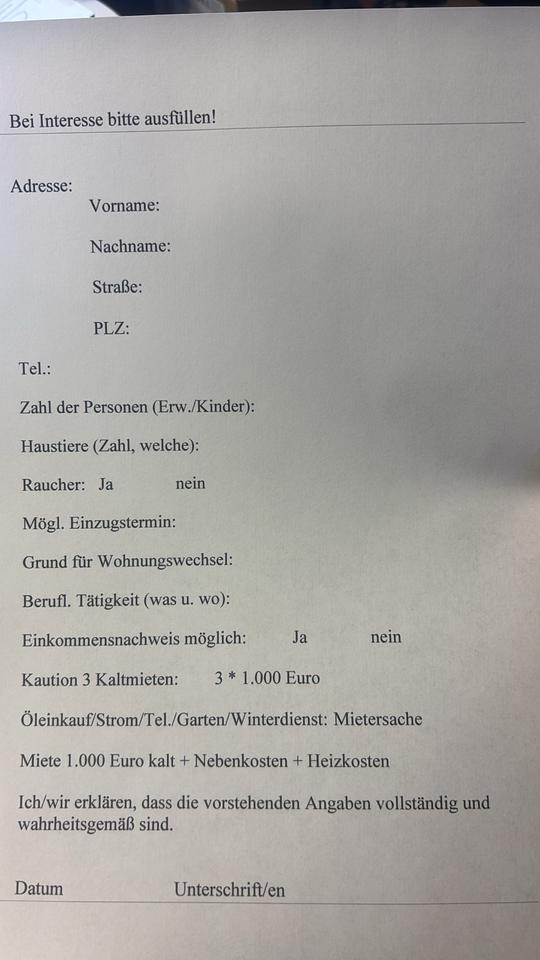 Angebot zur Miete