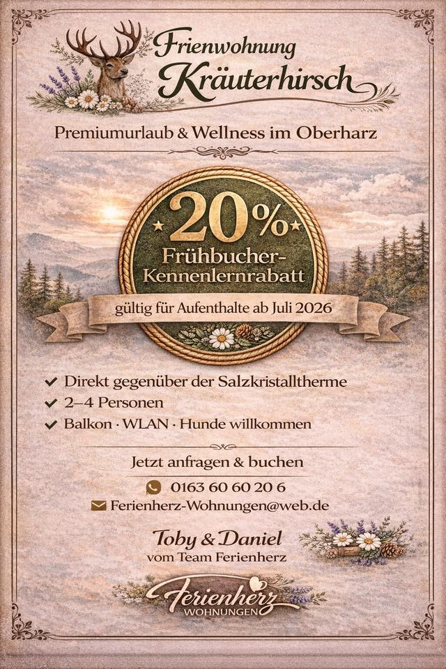 Sie befinden sich hier: Ferienwohnung Kräuterhirsch im Harz in Harz (LK Goslar) Bergstadt Altenau-Schulenberg i.O. - 3340213633-275-20109 | 1A-Immobilienmarkt.de