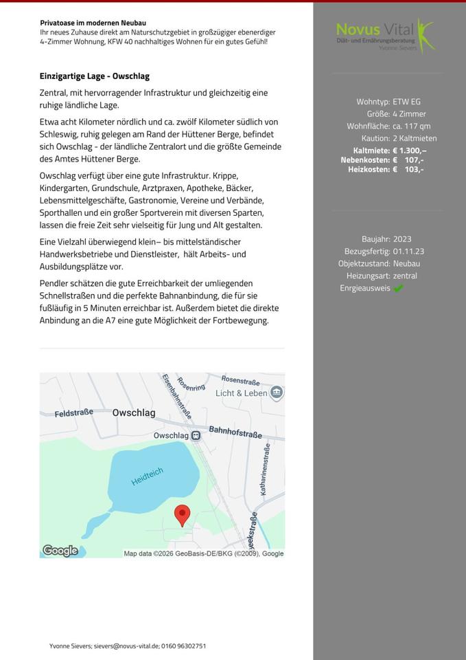 Sie befinden sich hier: 4-Zimmer Wohnung - Private Naturoase im modernen KFW 40 Neubau in Owschlag - 3340273643-203-15771 | 1A-Immobilienmarkt.de