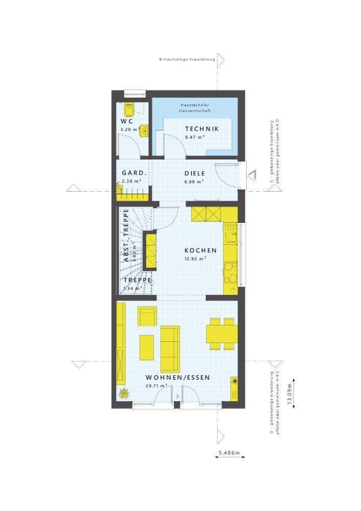• Grundriss EG Eingang giebelseitig -