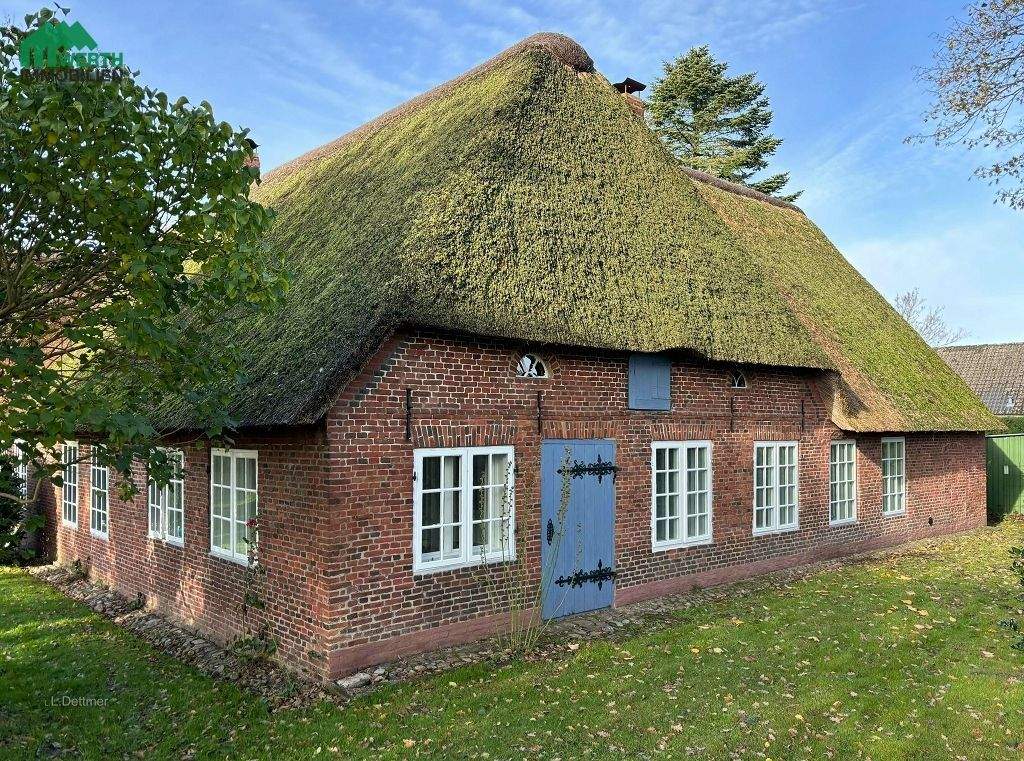 Sie befinden sich hier: Reetdachhaus, 2 zusammenlegbare ebenerdige Wohnungen, eigener kleiner Park in Süderlügum - 25FT9VG7MKS1 | 1A-Immobilienmarkt.de