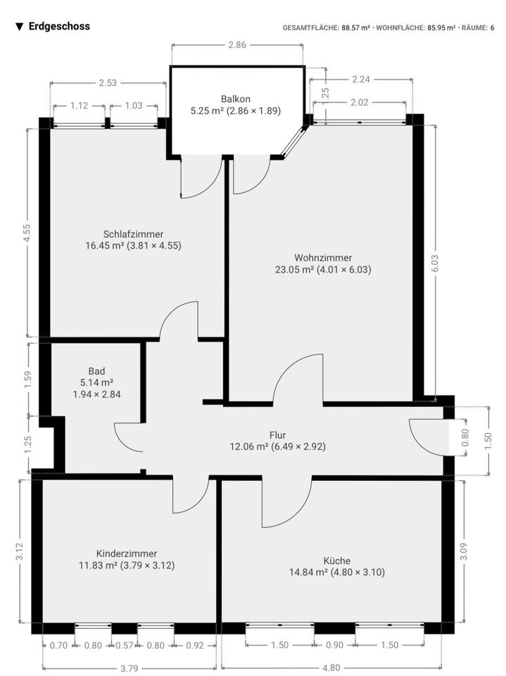 Gesamtgröße:ca. 86,00 m²