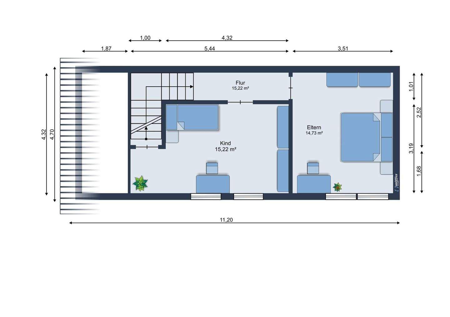 • mögliches Kinderzimmer 2 DG2 (zum Ausbau vorbereitet) -