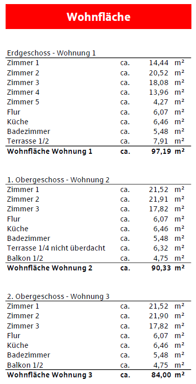 • Wohnflächenberechnung Whg. 1-3 -
