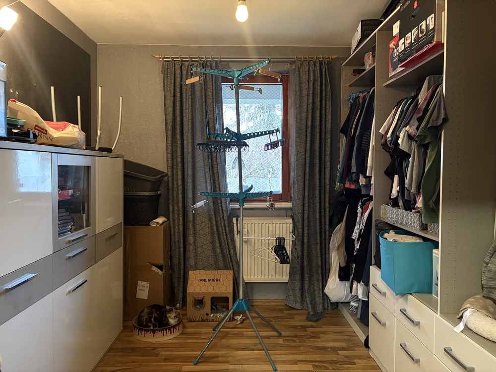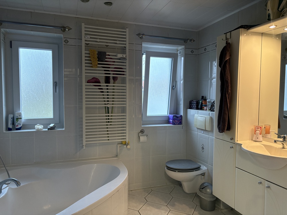 Das Badezimmer präsentiert sich in einem gepflegten Standard. Besonders komfortabel ist die dort integrierte Fußbodenheizung, die für behagliche Wärme sorgt. Die Beheizung des Gebäudes erfolgt über eine Gasheizung aus dem Jahr 2001. Diese ist Gemeinschaftseigen-tum und muss demnach nicht allein durch den Wohnungseigentümer gewartet werden. Die Elektroinstallation ist augenscheinlich zeitgemäß ausgeführt und bietet eine solide technische Grundlage für modernes Wohnen. Die Fenster stammen teilweise aus dem Jahr 1983. Es sind Holzfenster verbaut, während ein Teil der Fenster 2012 durch Kunststofffenster ersetzt wurde. Dadurch ergibt sich eine ausgewogene Mischung aus Bestand und Modernisierung. Plissees sind bereits vorhanden und unterstreichen den gepflegten Gesamteindruck. Ein SAT-Anschluss sowie ein DSL-Anschluss ermöglichen zeitgemäße Medien- und Internetnutzung. Zur Wohnung gehören zwei separate Kellerräume, die zusätzlichen Stauraum bieten und den praktischen Nutzen im Alltag deutlich erhöhen.