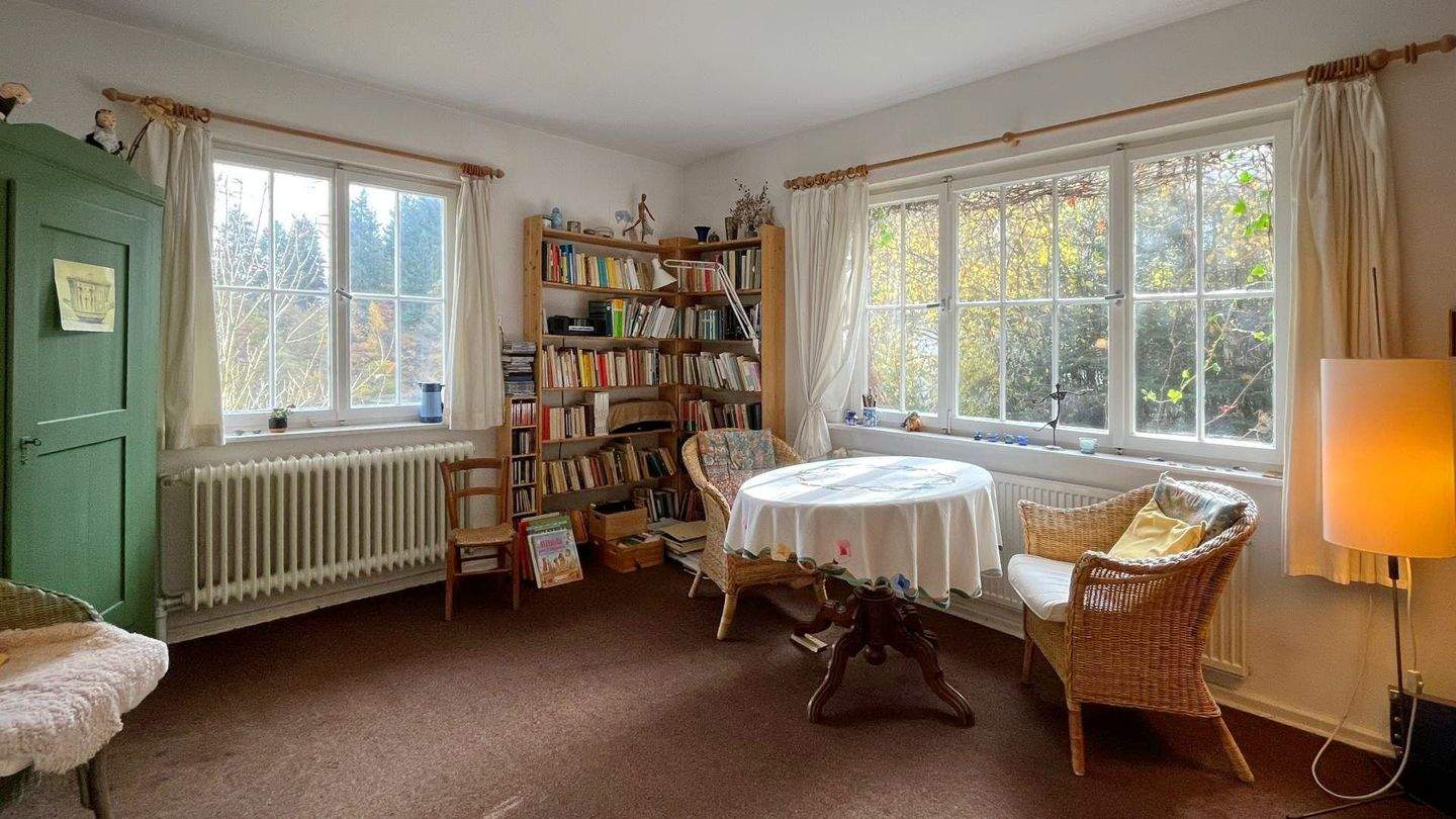 • Charmanter Wohnraum mit Blick in den Garten -