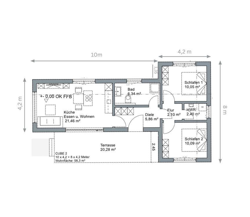 T-Cube I 68,44 qm - 3 Zimmer Einfamilienhaus zum Kaufen in Ernsgaden