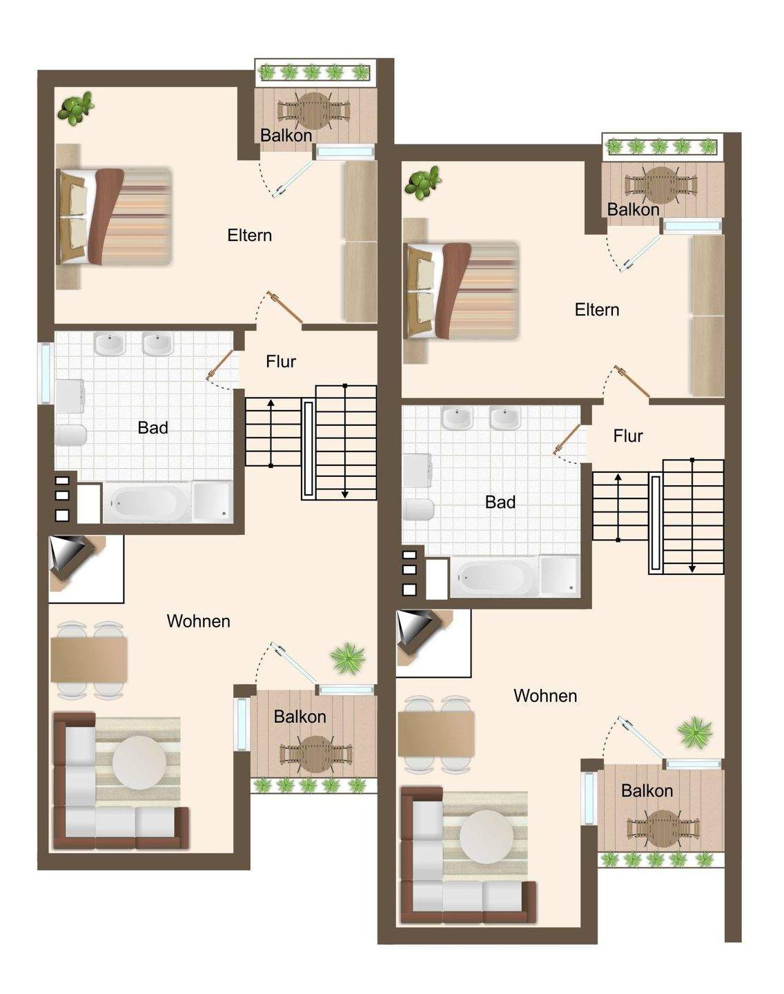 • Blick Balkon - *Doppelpack* Zwei zusammenhängende Reihenhäuser in Dinklage