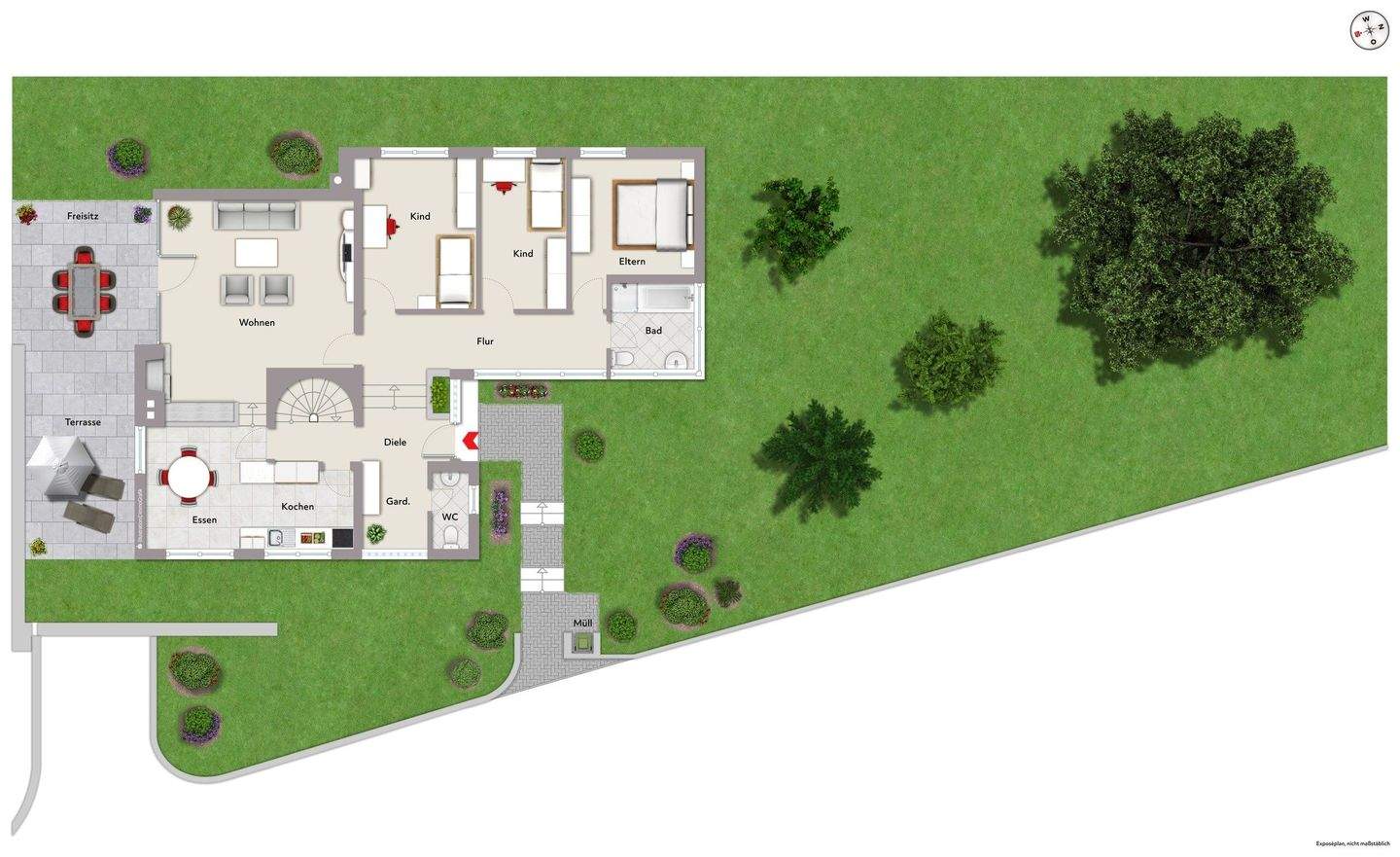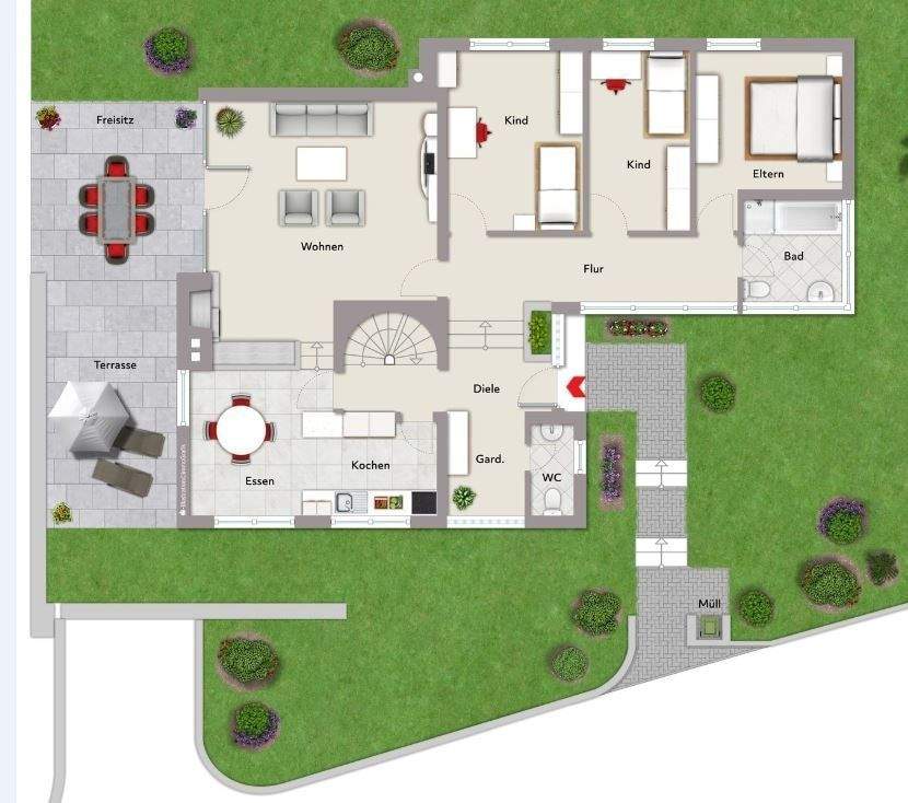 • Grundriss Erdgeschoss - Fokus Grundstück/Garten -