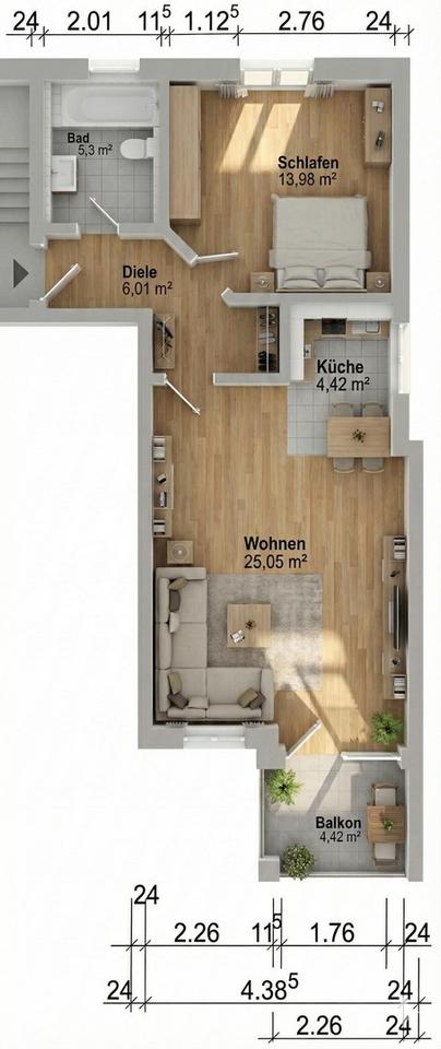 | Gesamtgröße: | ca. 57,00 m² |