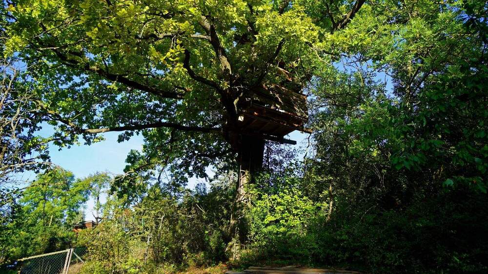 Das Grundstück ist ein wahres Paradies für Kinder - hier zum Beispiel das Baumhaus -