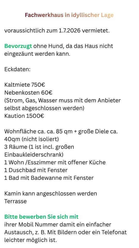 Angebot zur Miete
