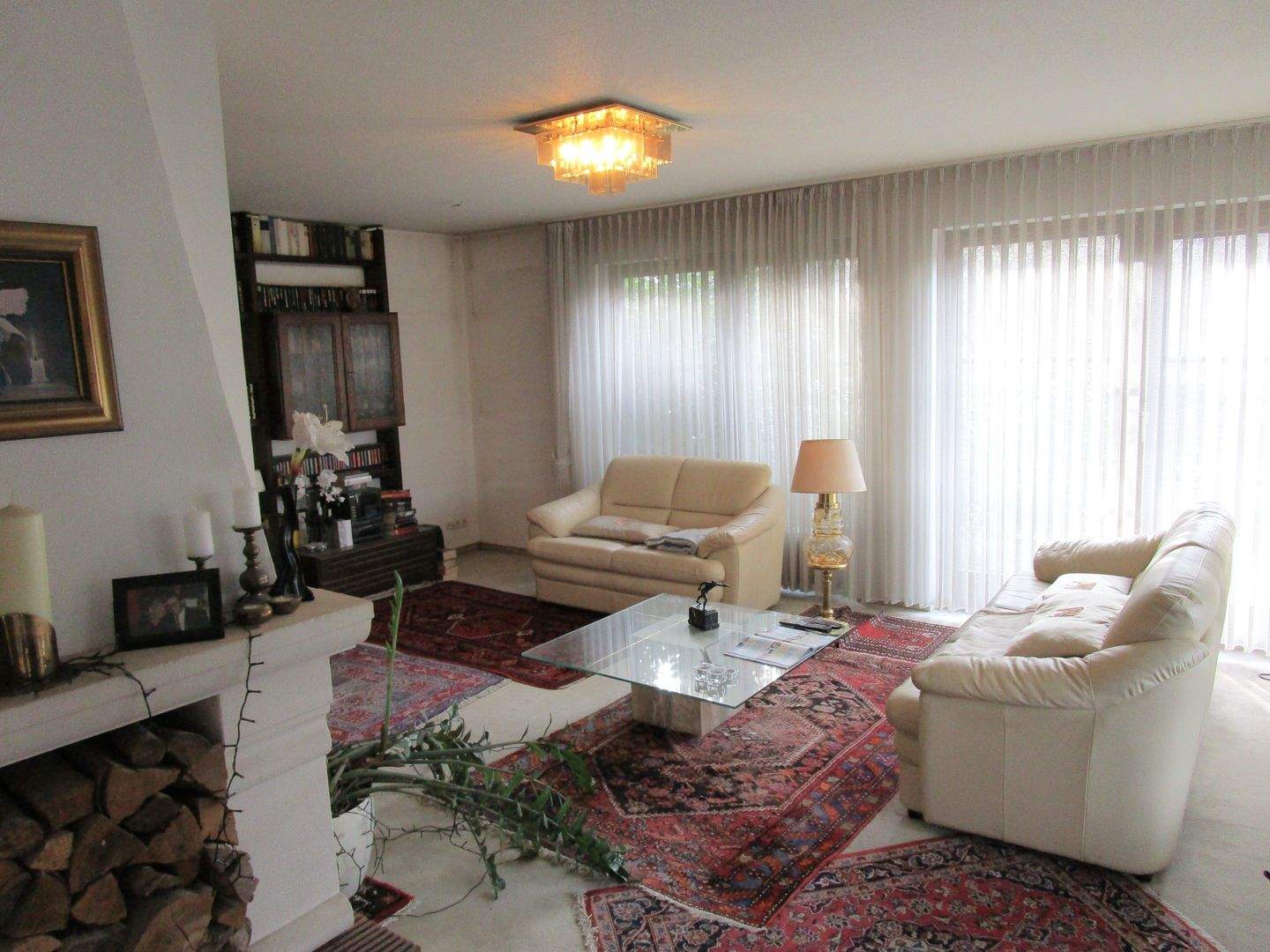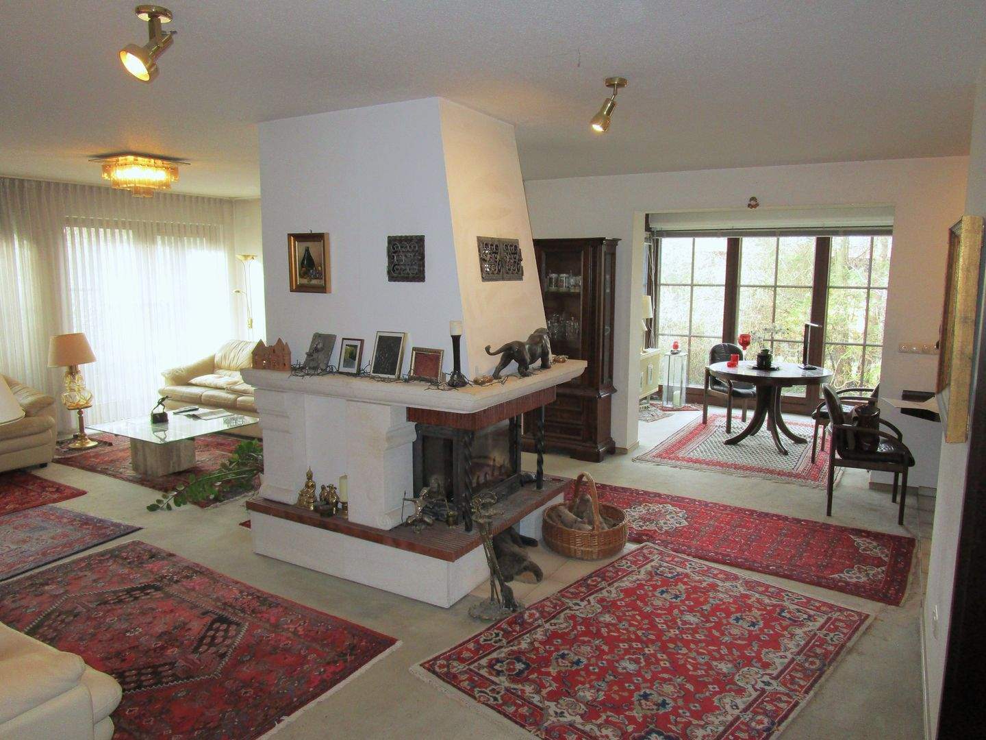 • Kaminofen und Blick in Wintergarten -