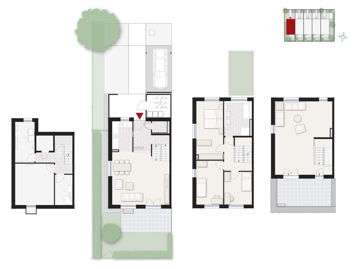 • Grundrisse nebeneinander -