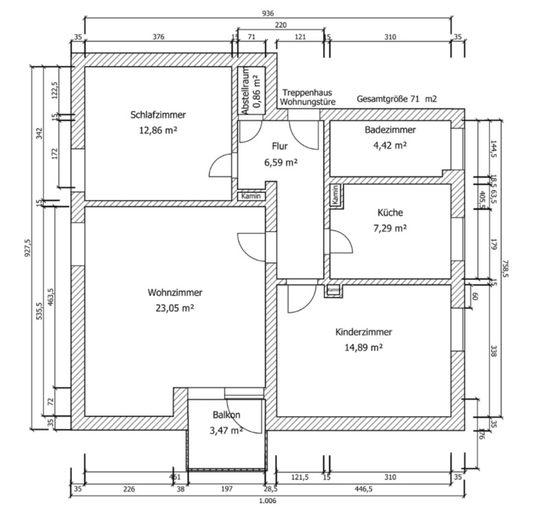 Gesamtgröße:ca. 71,00 m²