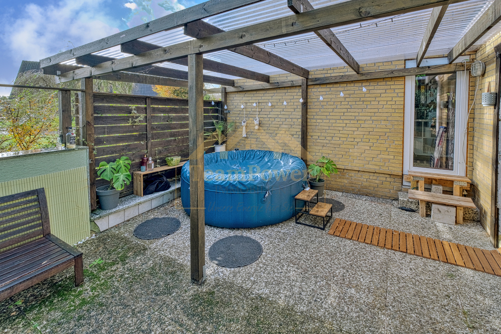 Im Erdgeschoss empfängt Sie ein freundlicher Eingangsbereich, die modernisierte Einbauküche und der gemütliche Ess- und Wohnbereich. Hier entsteht ein einladender Treffpunkt für die ganze Familie. Von der Küche aus gelangen Sie direkt auf die überdachte Terrasse, die einen herrlichen Blick in den gepflegten Garten bietet. Über die Terrasse erreichen Sie zudem die hauseigene Sauna – ein besonderes Highlight für erholsame Wellnessmomente zu Hause.