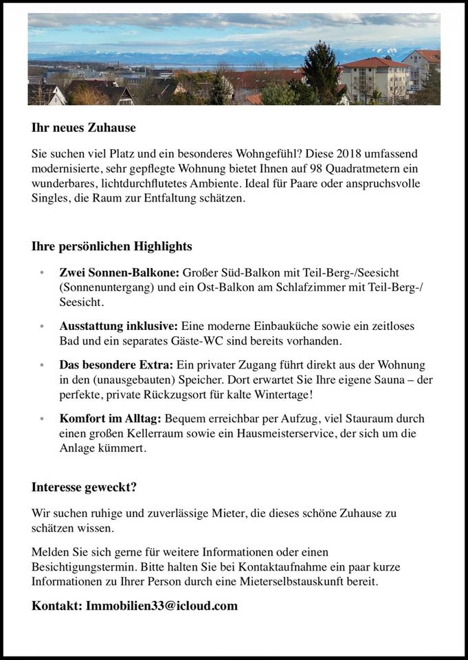 Sie befinden sich hier: Großzügige 98qm mit Teil Seesicht und Alpenblick in Immenstaad am Bodensee - 3343643560-203-9216 | 1A-Immobilienmarkt.de