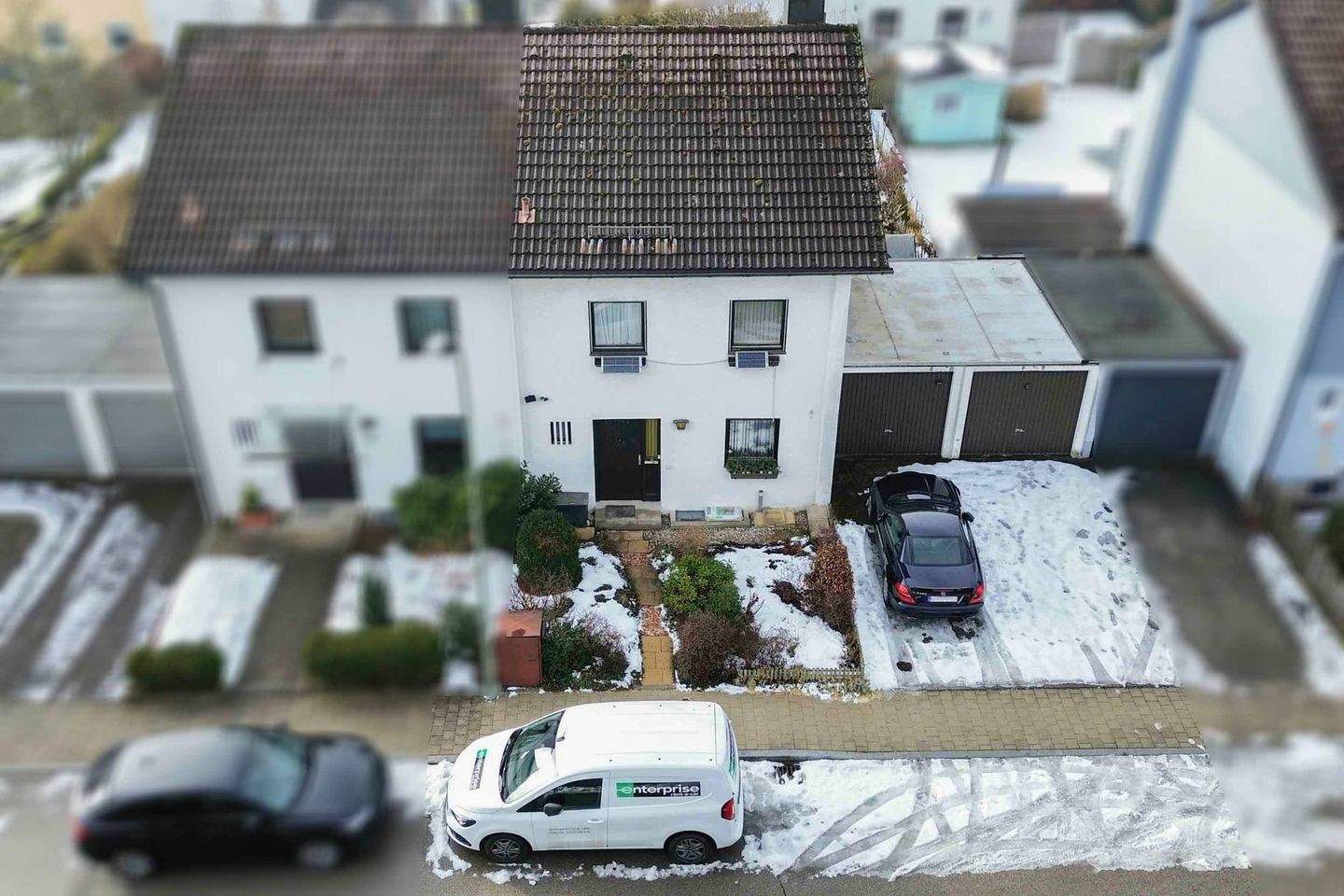 • Außenansicht Nord - Vermietete Doppelhaushälfte mit 2 Garagenstellplätzen in zentraler Lage von Feldkirchen-Westerham!