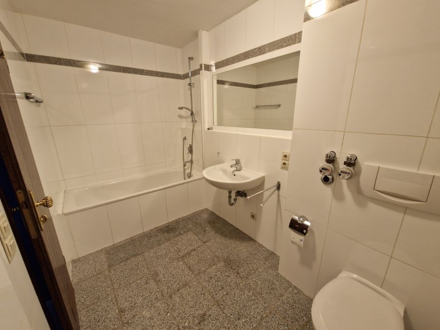 Das großzügige Bad ist weiß gefliest und mit einer Badewanne ausgestattet. Die Warmwasserversorgung erfolgt komfortabel über die Zentralheizung, d.h. keine Durchlauferhitzer.