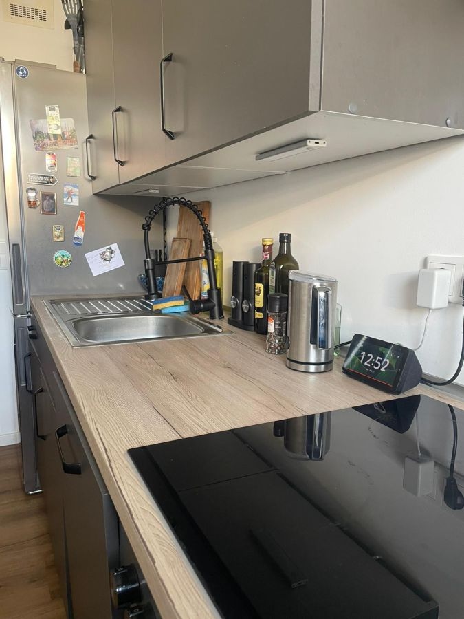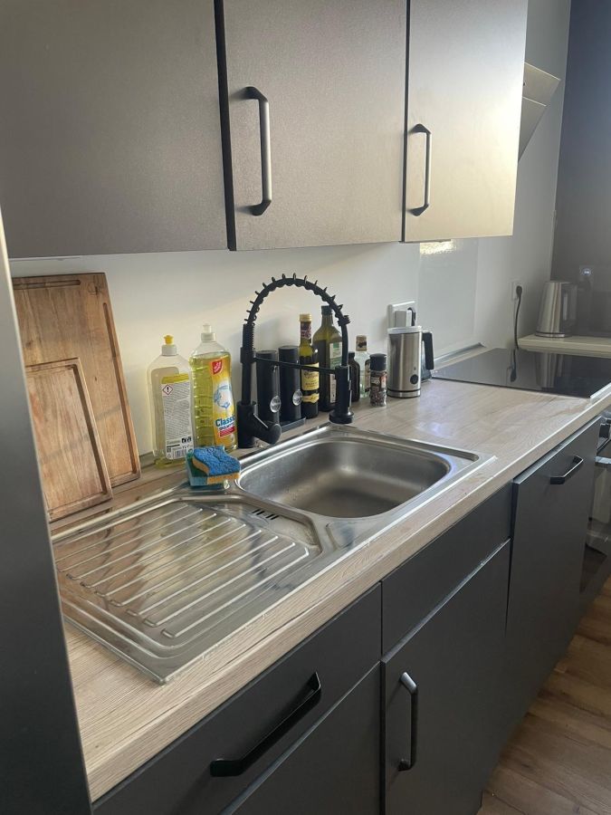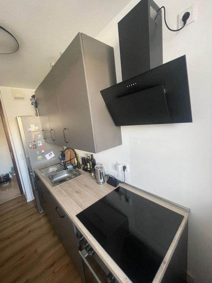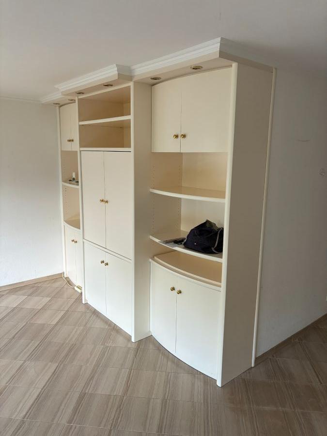 Die Wohnung wird teilmöbliert vermietet mit einer hochwertigen Schrankwand im Wohnbereich sowie einem Kleiderschrank als Spiegelschrank im Schlafzimmer. Die Einbauküche des Vormieters kann bei Bedarf gegen geringen Abstand übernommen werden.