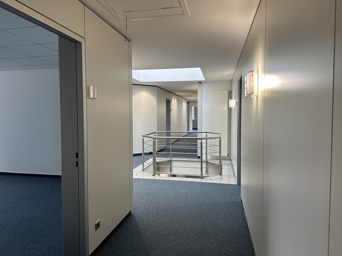Dank großer Fensterfronten sind die Räumlichkeiten lichtdurchflutet und bieten eine freundliche Atmosphäre, die zum produktiven Arbeiten beiträgt.