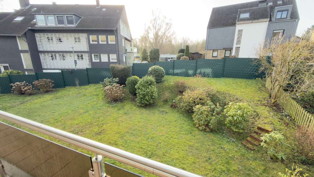 -Großer Balkon mit Blick in den gepflegten Garten