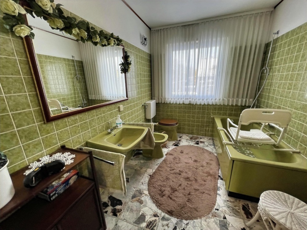 Hier wartet eine ganz besondere Immobilie auf Sie! In ruhiger Lage wurde 1974 auf einem 765 m² großen Eigentumsgrundstück dieses großzügige Fertighaus der Firma Streif erstellt. Bereits der Eingangsbereich ist einladend und bietet viel Platz. Von hier aus geht es rechts in das helle Wohnzimmer mit großer Fensterfront und dem Zugang zum sonnigen Süd-Balkon, in das separate Esszimmer und die Küche. Nach links betreten Sie über einen kleinen Flur den persönlichen Schlafbereich mit insgesamt 3 Zimmern, dem Tageslichtbad mit Badewanne sowie dem Gäste-WC.